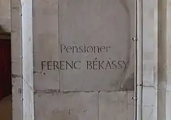 In a side chapel at King's College Chapel there is a plaque commemorating members of the college killed serving in the Great War, including Rupert Brooke. Carved into the stone of another wall there is a single name, that of Békássy. Keynes had asked the college to include him among those commemorated but another of the Fellows of King's, who had lost a son in the war, objected to the name of someone who had died fighting the Allies being listed with the other fallen.[3]
