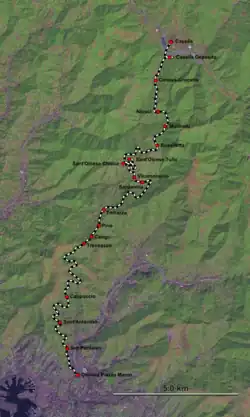 In 1953 the extension in regression was finally realized, entirely in the road, from the old to the new terminus station, called Casella-Paese,[3][5] while the Casella-Deposito station remained active only as a technical stopover.