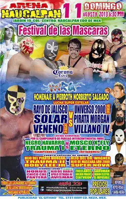 At the 2013 event Avisman, El Hijo del Diablo, El Hijo de Pirata Morgan, Universo 2000 and Veneno all wore their masks again after having lost Luchas de Apuestas, or "bet matches", in the past and thus lost the rights to wear their mask. In the main event long time rivals Rayo de Jalisco Jr. and Universo 2000 each captained a team as Rayo de Jalisco Jr., El Solar and Veneno defeated Universo 2000, Pirata Morgan and Villano IV.