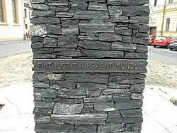 This sentence was the motto of Ferdinand I, Holy Roman Emperor (1556–1564),[2] who used it as his slogan, and it became an important rule to control the nation.[3] It probably originated from Johannes Jacobus Manlius's book Loci Communes (1563).[4] It is a maxim meaning that a just decision should be made at whatever cost in terms of practical consequences. An alternative phrase is Fiat justitia ruat caelum, meaning "Let justice be done, though the heavens may fall."[1]