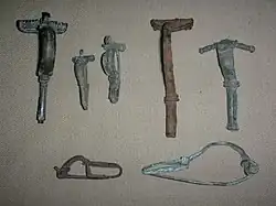 They were widely used by the Germanic Visigoths, Ostrogoths, Gepids and the non-Germanic Slavs and Avars, and are found over a wide part of southern and western Europe in the 5th and 6th centuries AD. Some historians have debated whether some of these Gothic fibulae could also be attributed to the Vandals.[6] There are also a wide variety of Anglo-Saxon fibulae from the 5th to 7th century such as the equal-arm type and the small-long type. Most Viking fibulae are variations on the ring or annular design (see below).
