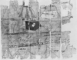 This Egyptian papyrus from 1320 BC, preserved in the Turin Museum, presents the map of an Egyptian gold mine and can be considered the oldest representation of a geological field