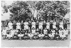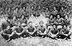 Fiji played their first international against Western Samoa in Apia, Samoa on 18 August 1924. Fiji's 20-man squad came exclusively from the five registered native clubs of the time. The match was played at 7 am to allow the Samoans time to get to work afterwards and was played on a pitch with a large tree on the halfway line. Fiji wore black and won 6–0 despite playing barefoot. The return match was won 9–3 by Samoa to draw the series. The first-ever Fiji test team continued their overseas adventure with a nine-match tour of Tonga. Though Fiji lost the first test played in Nukuʻalofa 9–6, they were not to lose again, taking the second test 14–3 then drawing the decider 0–0. They won all six of the matches against non-test opposition.