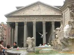 - Fontana della Rotonda (1711). The fountain setting for the Egyptian obelisk that faces the Pantheon was commissioned by the Albani pope Clement XI; Barigioni was commissioned to re-erect an Egyptian obelisk (the Obelisco Macuteo) in the place of the central vase of Giacomo Della Porta's fountain (1575) in the centre of Piazza della Rotonda. Luigi Amici carved the four dolphins at the base of the pedestal (illustration). The ensemble was adapted in 1880.[1]