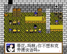 Due to the Famicom's restricted hardware capabilities, the remake is in 2D computer graphics. Special compensation was made for some of the in-battle sprites such as Cloud Strife's, combining two 16x24 pixel sprites side by side instead of the usual single sprite to account for weapons such as Cloud's sword or Barret's gun.[5] While most Japanese games use only 8x8-pixel hiragana or katakana fonts, and most Chinese games use 4-color 16x16-pixel tiles stored in dedicated CHR ROM pages, this game uses its own several-hundred 16x16-pixel monochrome font instead. The script itself is strewn in chunks across the code; at the beginning of each piece of text for dialog boxes is a three digit number preceded by an @-symbol, signifying which character portrait to display.[3][5]