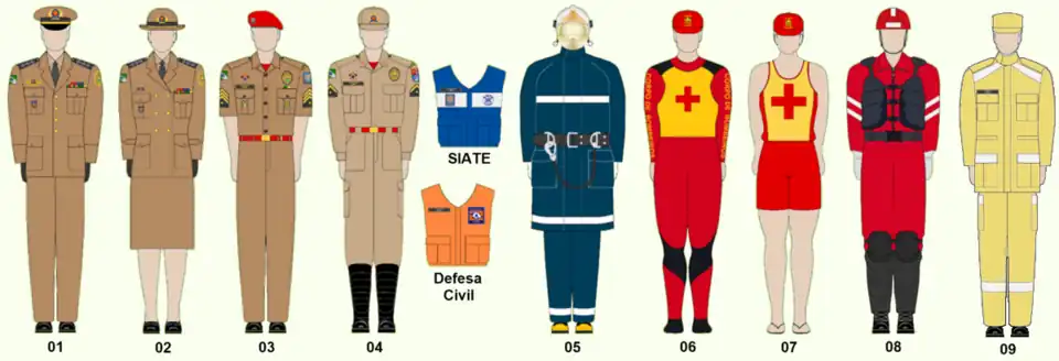 The Firefighters Corps of Acre wear the same uniforms of the Military Firefighters of Acre State, just adding their badges and insignias.