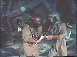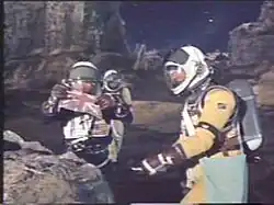 The spacesuit type worn by the film's UN Astronauts is actually the Windak high-altitude pressure suit,[15] developed for the Royal Air Force. Each was fitted with a 1960s-type aqualung cylinder worn as a backpack. These pressure suits would also be used in two Doctor Who stories: William Hartnell's final story "The Tenth Planet" (1966) and the Patrick Troughton-era "The Wheel in Space" (1968). They also appear in the original Star Wars trilogy as the costumes for Bossk and Bo Shek.
