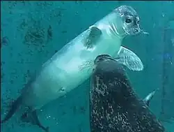 The idea of creating a Danish fisheries museum with an aquarium came from the journalist Hakon Mielche in 1941. In 1962, a planning committee was formed in Esbjerg which soon led to the collection of artefacts.[3] Building began in 1966, allowing the privately owned institution to be opened to the public in 1968. From the start, the museum contained a fisheries exhibition and a saltwater aquarium. A sealarium was added in 1976. In 1989 a start was made on an outdoor exhibition which was later extended. The museum established a research unit in 1994, followed in 2000 by the Centre for Maritime and Regional Studies (Center for Maritime og Regionale Studier), a cooperative venture with the University of Southern Denmark. In 1999, a five-storey museum building with almost 2,000 m2 (22,000 sq ft) of floor space was inaugurated, housing a new permanent exhibition, a library, storage rooms, an archive and offices. Provision was also made for temporary exhibitions while the educational facilities were modernized. A new saltwater aquarium was installed in 2002 and a new "sealarium" (exhibit for seals) in 2013.[2] The largest aquarium tank contains 100,000 L (26,000 US gal) saltwater and is home to species such as cod, halibut, conger eel, gilthead seabream, greater spotted dogfish and thornback ray,[4] while the sealarium contains 500,000 L (130,000 US gal) and is home to grey seal and harbour seal.[5]