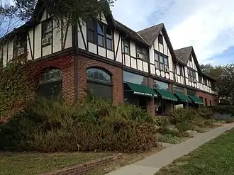 Built in 1922, Antelope grocery was constructed as a mixed use (commercial and apartment) building.[7] The two-story brick and stucco structure makes use of architectural elements common to period houses. The store includes a visual usage of Tudor revival-styled elements within the construction and has undergone multiple renovations while retaining a high degree of architectural integrity. This includes the current existence of its original metal framed store-front windows. The lower level of the building remains business, while the upper level is mainly residential apartments. As far as the exterior is concerned, stucco and half-timber form the cladding which traces up to a truncated steeply pitched roof capped with a flat decking. The main modifications to the building's exterior include re roofing and addition of protective glazing over the transoms.