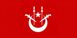 | Design | A red field defaced with a white crescent and star and two white kris and spears. |