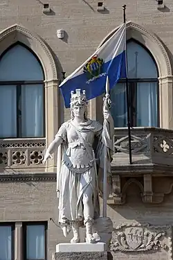- ^ a b Consiglio Grande e Generale (22 July 2011). "BANDIERA E STEMMA UFFICIALE DELLA REPUBBLICA DI SAN MARINO" (PDF). Consiglio Grande e Generale (in Italian). pp. 3–4. Retrieved 29 September 2023.