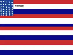 Prior to West Virginia's separation from Virginia on June 20, 1863, pro-Union supporters in western Virginia created unique flags to show their support for the Union cause. In January 1861, the residents of Kingwood erected a flagpole measuring about 105 feet (32 m) in height, and on it they hoisted a handmade streamer with the word "UNION" prior to Virginia's secession.[6] During the war, western Virginia regiments in the Union Army carried flags handmade by supportive women, as was the case with the Fifth Regiment Virginia Volunteer Infantry who carried a flag bearing the legend "5th Va. Regiment" in 1861.[7]