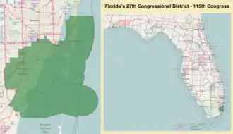 Florida's 27th congressional district is an electoral district for the U.S. Congress and was first created in South Florida during 2012, effective January 2013, as a result of the 2010 census.[6] The first candidates ran in the 2012 House elections, and the winner was seated for the 113th Congress on January 3, 2013.