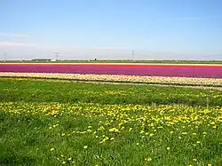 Flower bulb cultivation is an economic activity in the provinces of North Holland, South Holland and Flevoland. The colourful flower fields that have come to symbolise Holland can be seen in these areas around April.[1]