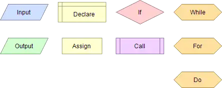 Flowgorithm combines the classic flowchart symbols and those used by SDL diagrams. The color of each shape is shared by the associated generated code and the console window. The colors can be changed to several built-in themes.
