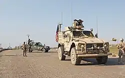 In August 2016, the BBC published photographs taken in June that year[130] that it said showed British special forces soldiers apparently guarding the perimeter of the New Syrian Army's base at al-Tanf (Al Waleed) in Syria's Homs province on the Syria-Iraq border that had been previously seized by ISIL militants in May 2015.[131] The troops were shown to be equipped with four-wheel drive Al-Thalab vehicles and a range of weapons which included sniper rifles, anti-tank weapons and heavy machine guns.[130]