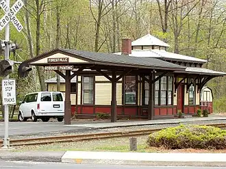 The station was built in 1881 by the New York and New England Railroad on a railroad line originally owned by the Hartford, Providence and Fishkill Railroad. Local lore says that the building was prefabricated and delivered to the site by the railroad. If this method was used, it was the only instance in which the railroad employed this construction method. The station was served at the outset by 13 trains per day, greatly enhancing the village's economic prosperity. Service to the station was discontinued in 1960.[2]