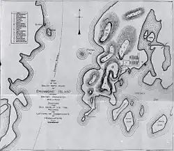 A lime quarry and kiln is located south of the town; this location was likely used to produce mortar for the chimneys. A saw mill was also located north of the town; this may or may not have been contemporaneous with Fort Drummond, but evidence of sawn logs in the fort buildings was confirmed.[12] Some of the islands in Whitney Bay were also used by the fort, with the fort surgeon living on one and another used for artillery target practice.[16]