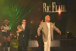 On the January 4, 2010, live, three-hour episode of Total Nonstop Action Wrestling (TNA)'s Impact! television show, Ric Flair made his debut for the company, observing the main event match between A.J. Styles and Kurt Angle.[5] On January 17 at the Genesis pay-per-view, Flair helped Styles defeat Angle to retain the TNA World Heavyweight Championship, and in the process turned both himself and Styles heel.[6] On the following episode of Impact!, Flair announced that he was going to take Styles under his wing and make him the next Nature Boy.[7] On the February 24 episode of Impact! Flair and Styles were joined by Desmond Wolfe and in the weeks leading to Lockdown Beer Money, Inc. (James Storm and Robert Roode) and Sting were added to the group to complete Team Flair for the annual Lethal Lockdown match.[8] On April 18 at Lockdown, Team Flair was defeated by Team Hogan (Abyss, Jeff Hardy, Jeff Jarrett and Rob Van Dam) and the following night on Impact! Styles lost the TNA World Heavyweight Championship to Van Dam.[9][10] After Lockdown Sting left the group and went on to feud with Jarrett, while the rest of Team Flair remained intact.