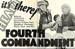 The Fourth Commandment is a 1927 American silent drama film directed by Emory Johnson and based on the short story "The Fourth Commandment" by Emilie Johnson. The film stars Belle Bennett, Henry Victor, June Marlowe, and Mary Carr. The film was released on March 20, 1927 by Universal Pictures. The Fourth Commandment is - "Honor your father and your mother. . ."[1][2]
