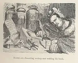 Timothy Hampton writes that "to a degree unequaled by the case of any other writer from the European Renaissance, the reception of Rabelais's work has involved dispute, critical disagreement, and ... scholarly wrangling ..."[82] In particular, as pointed out by Bruno Braunrot, the traditional view of Rabelais as a humanist has been challenged by early post-structuralist analyses denying a single consistent ideological message of his text, and to some extent earlier by Marxist critiques such as Mikhail Bakhtin with his emphasis on the subversive folk roots of Rabelais' humour in medieval "carnival" culture. At present, however, "whatever controversy still surrounds Rabelais studies can be found above all in the application of feminist theories to Rabelais criticism", as he is alternately considered a misogynist or a feminist based on different episodes in his works.[83]