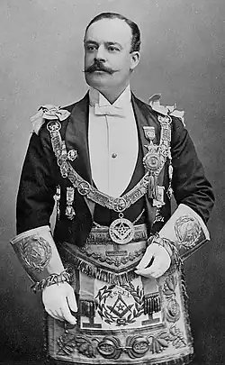 ![]() The 5th Earl of Warwick wearing masonic regalia in 1889 | |