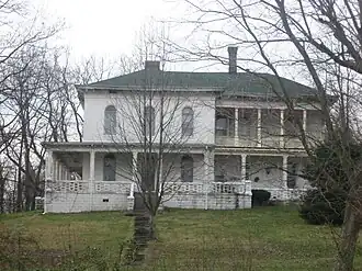 Franklin Landers–Black and Adams Farm (named for original owner Franklin Landers and later owners Black and Adams), also known as Mt. Aetna Stock Farm, is a historic home and dairy farm located in Brooklyn and Clay Township, Morgan County, Indiana. The farmhouse was built in 1862, and is a two-story, rectangular, Italianate style brick dwelling with a rear ell. It has a cross-gable roof, wraparound porch, and features projecting eaves with decorative brackets. Also on the property are the contributing dairy barn (1907–1908), two garages, calf barn, ice house, and acetylene pit.[2]: 5, 12