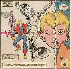Under the care of yet another guardian, a robot nicknamed H.E.R.B.I.E., Franklin unintentionally used his reality warping abilities to age himself into adulthood.[14] In this form, he was an adept at molecular manipulation and psionics. On realizing his mistake, he restored himself to childhood.[15]