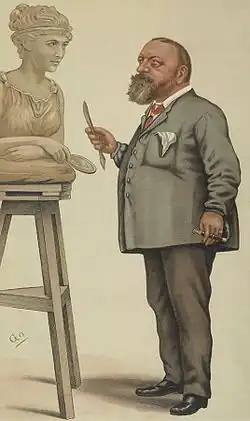 His illustrations for Vanity Fair included caricatures of Hubert Herkomer, Carl Haag, Count von Moltke, Prince Victor of Hohenlohe-Langenburg, and perhaps Tom Nickalls.[17]