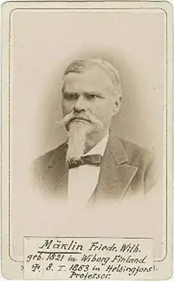 Fredrik Wilhelm Mäklin (May 26, 1821 – January 8, 1883) was a Finnish zoologist and a professor at the University of Helsinki. He took a special interest in the beetles of the region, taking an interest in geographic distributions and was opposed to ideas of Darwinian evolution.