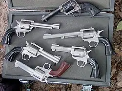 Freedom Arms revolvers with a Colt 1873P above.