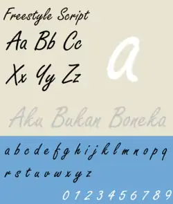 There is a faux calligraphy typeface called "Freestyle" (alternately "Freestyle Script" faux calligraphy typeface)[8] that could confuse many graphic designers who use Microsoft to search or download a particular typeface. It was first listed on August 23, 2016, and the typeface costs US$14 lower (that duplicate typeface name costs US$15) than the original typeface that can be seen at MyFonts. There is another typeface used the same name (alternately "Freestyle Script" brush calligraphy typeface)[9] that could also confuse graphic designers to the original typeface name. The designers however, did answer the comment yet why that name are they used than changing to the other name. In reality, those typeface designers are about to confuse people who are using the original Freestyle Script typeface to force its downfall to the original owner that designed the typeface.