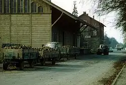 The freight shed is also still preserved to the east of the station building. In addition to agricultural products—mainly sugar—gravel from the Neckar river was also loaded as a building material.