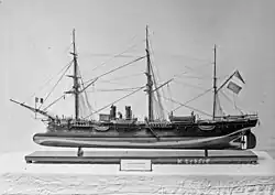 In the late 1860s, the major European navies saw the success that Confederate commerce raiders had had during the American Civil War, and decided to respond with larger, faster cruisers that could catch such raiders. France's construction program was delayed by the Franco-Prussian War of 1870–1871, but the navy quickly began preparations for the 1872 fiscal year.[1] Design work on first such vessels, the Duquesne class, began in 1871, and two were ordered in 1873 under the auspices of the naval construction program adopted in 1872. At the same time, the French naval minister Louis Pothuau issued a request on 14 September 1871 for smaller cruisers that could fulfill similar roles.[2]