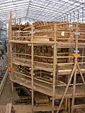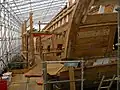 Plans of a sister ship, Concorde, were used. The cost was estimated to be $22 million.[2] The original plans had been modified in several ways for reasons of strength and safety: planks had been bolted rather than pegged to avoid movement during the long period of construction. Similarly, the mast sections were fastened with glue rather than metal hoops to avoid water penetration. The cannons are lightweight and non-functional to save weight. Manilla rope has been used for the majority of the rigging and the sails made of linen canvas.