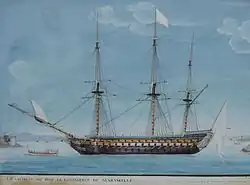 Commerce de Marseille was laid down at the Arsenal de Toulon in September 1786, launched on 7 August 1788 and completed in October 1790.[5] Built with state-of-the-art plans by Jacques-Noël Sané, she was dubbed the "finest ship of the century". Her construction was difficult because of a lack of wood, and soon after her completion, she was disarmed in 18 December 1793.[2]