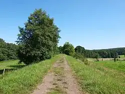 In 1968, the line between Inheiden and Berstadt-Wohnbach had to be relocated to allow lignite mining. This also caused Obbornhofen-Bellersheim station to be relocated on 9 June 1968.[2] The old line is now dismantled, but still recognisable from the air.