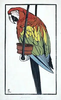 During World War II, the Allied bombing of Stuttgart destroyed Lang's studio. As a result, his works became rare and valuable. Some 330 of his woodblocks survived the war. His animal and bird studies were outstanding, and clearly inspired other German and Austrian artists in their technique and composition. The influence of Japanese woodcut masters on Lang's work is evident.