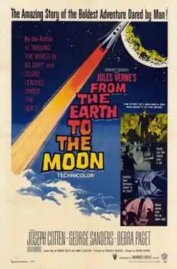 From the Earth to the Moon is a 1958 American Technicolor science fiction film, produced by Benedict Bogeaus, directed by Byron Haskin, that stars Joseph Cotten, George Sanders, and Debra Paget. Production of the film originated at RKO Pictures, but when RKO went into bankruptcy, the film was acquired and released by Warner Brothers.