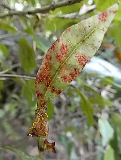 110. ^ Sutherland, Roanne; Soewarto, Julia; Beresford, Rob; Ganley, Beccy (1 July 2020). "Monitoring Austropuccinia psidii (myrtle rust) on New Zealand Myrtaceae in native forest". New Zealand Journal of Ecology. 44 (2). doi:10.20417/nzjecol.44.23. ISSN 0110-6465.