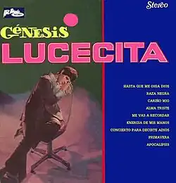 "Génesis" is a 1969 Spanish-language song sung by Puerto Rican singer Lucecita Benítez, written by Guillermo Venegas Lloveras. The song won a prize at the first Festival Mundial de la Canción Latina, held in Mexico, and placed Benítez on the Latin music international stage.[1] The song is written in the form of a bolero.[2]