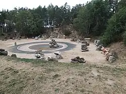 The Geoscope is a monumental display of rocks at the La Lozère motorway service at junction 32 of the A75 autoroute at Albaret-Sainte-Marie in the department of Lozère, France. It is sometimes described as a geological museum. 45 stones, each weighing many tonnes and accompanied by an interpretive panel are artistically arranged in a circle in an old quarry.[1]