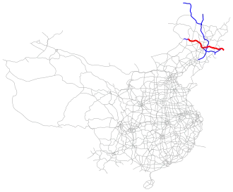 The Hunchun–Ulanhot Expressway (Chinese: 珲春—乌兰浩特高速公路), designated as G12 and commonly referred to as the Hunwu Expressway (Chinese: 珲乌高速公路) is a 926.22-kilometre-long expressway (575.53 mi) in the People's Republic of China that connects the cities of Hunchun, Jilin and Ulanhot, Inner Mongolia. The route parallels much of China National Highway 302.[1]