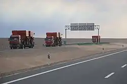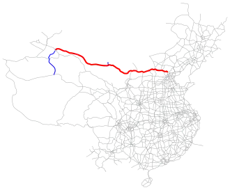 The Beijing–Ürümqi Expressway (Chinese: 北京-乌鲁木齐高速公路), designated as G7 and commonly referred to as the Jingxin Expressway (Chinese: 京新高速公路) is an expressway that connects the cities of Beijing, China, and Ürümqi, Xinjiang. It opened in July 2017[2] measuring 2,540 km (1,580 mi) in length.[3] It is noted for being the world's longest desert highway, passing through several deserts part of the Gobi Desert, such as the Ulan Buh Desert, the Tengger Desert and the Badain Jaran Desert.[4]