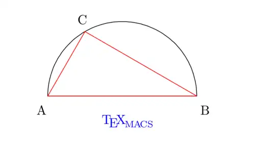 Graphics objects are also part of the TeXmacs format and can be manipulated programmatically from Scheme. An example of TeXmacs graphics generated in a TeXmacs Scheme session is shown below together with the session which generated the image. Images generated programmatically in a Scheme session can also be edited using the internal drawing editor, as they are inserted in the document as a tree; Scheme scripts can also be executed through the extern TeXmacs macro—in this case only the typeset material is available in the document and no direct editing is possible (the modifications must be made within the Scheme code).
