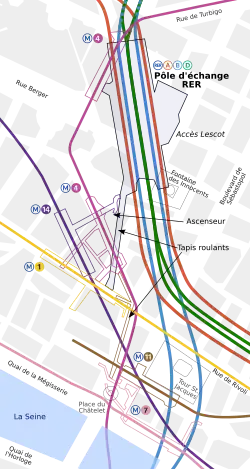 - ^ "Réaménagement du pôle RER Châtelet-Les Halles (presentation)" (PDF) (in French). Syndicat des Transports d'Île-de-France. Archived from the original (PDF) on 8 July 2011. (4.04 MB)