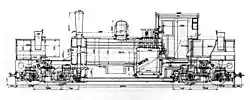 The Tasmanian Railways stipulated two features that were not in Herbert Garratt's original concept. The first was a compound configuration in which two high-pressure cylinders were on the rear engine unit and a pipe led to two larger, low-pressure cylinders on the front engine unit. The second was to have the cylinders facing inwards, which would reduce the distances between both the main steam pipe and the high-pressure cylinders and between the high-pressure and low-pressure cylinders.[13] The latter feature made the locomotive unnecessarily complicated and placed the high-pressure cylinders directly underneath the cab, making it uncomfortably hot for the crew on the rare days when Tasmania's West Coast Range was warm. Only one more Garratt locomotive was produced with compound propulsion (by Beyer, Peacock & Co. in 1927 for Burma Railways).[14] The company built no more Garratts with inward-facing cylinders, but two Garratts operated by the Southern Fuegian tourist railway at Ushuaia in Argentina, largely based on the K class, have that feature.[8][note 3]