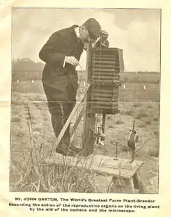 As a young man, John Garton (1863–1922),[1] was the first to understand that whilst some agricultural plants were self-pollinating, others were cross-pollinating. He began experimenting with the artificial cross pollination firstly of cereal plants, then herbage species and root crops.