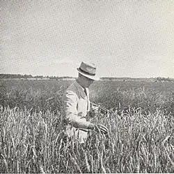 Generous publicity followed in the press, together with the publication of articles by botanists in the Journal of the Royal Agricultural Society of England, and in the Transactions of the Royal Highland and Agricultural Society of Scotland in 1894 and 1898.[5] Professor Robert Wallace (1853–1939) of the University of Edinburgh said 'Under the system originated by Mr John Garton an infinite number of new and distinct breeds of oats, barleys, wheats, clovers and grasses have been produced'.[6]