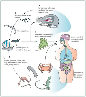 - ^ Wang, Qiao-Ping; Lai, De-Hua; Zhu, Xing-Quan; Chen, Xiao-Guang; Lun, Zhao-Rong (2008-10-01). "Human angiostrongyliasis". The Lancet Infectious Diseases. 8 (10): 621–630. doi:10.1016/S1473-3099(08)70229-9. ISSN 1473-3099. PMID 18922484.